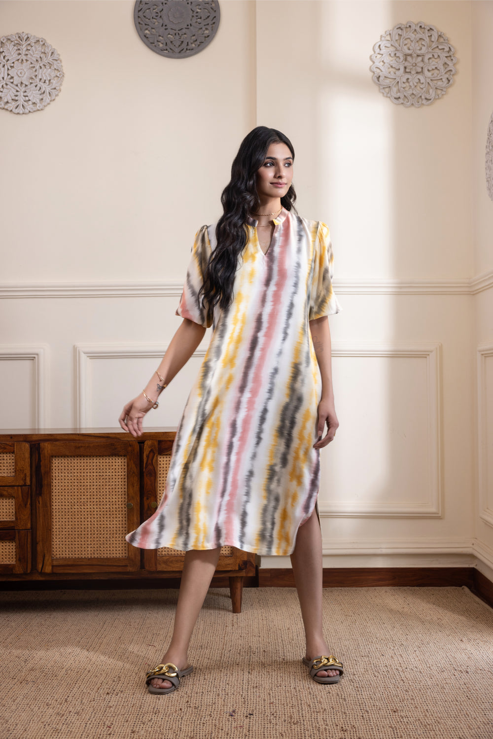 Indulge in effortless elegance with the Sapphire Gleam Shibori Dress. The unique shibori design adds a touch of artistry to the relaxed fit, making it both stylish and comfortable. Elevate your wardrobe with this luxurious and exclusive piece.