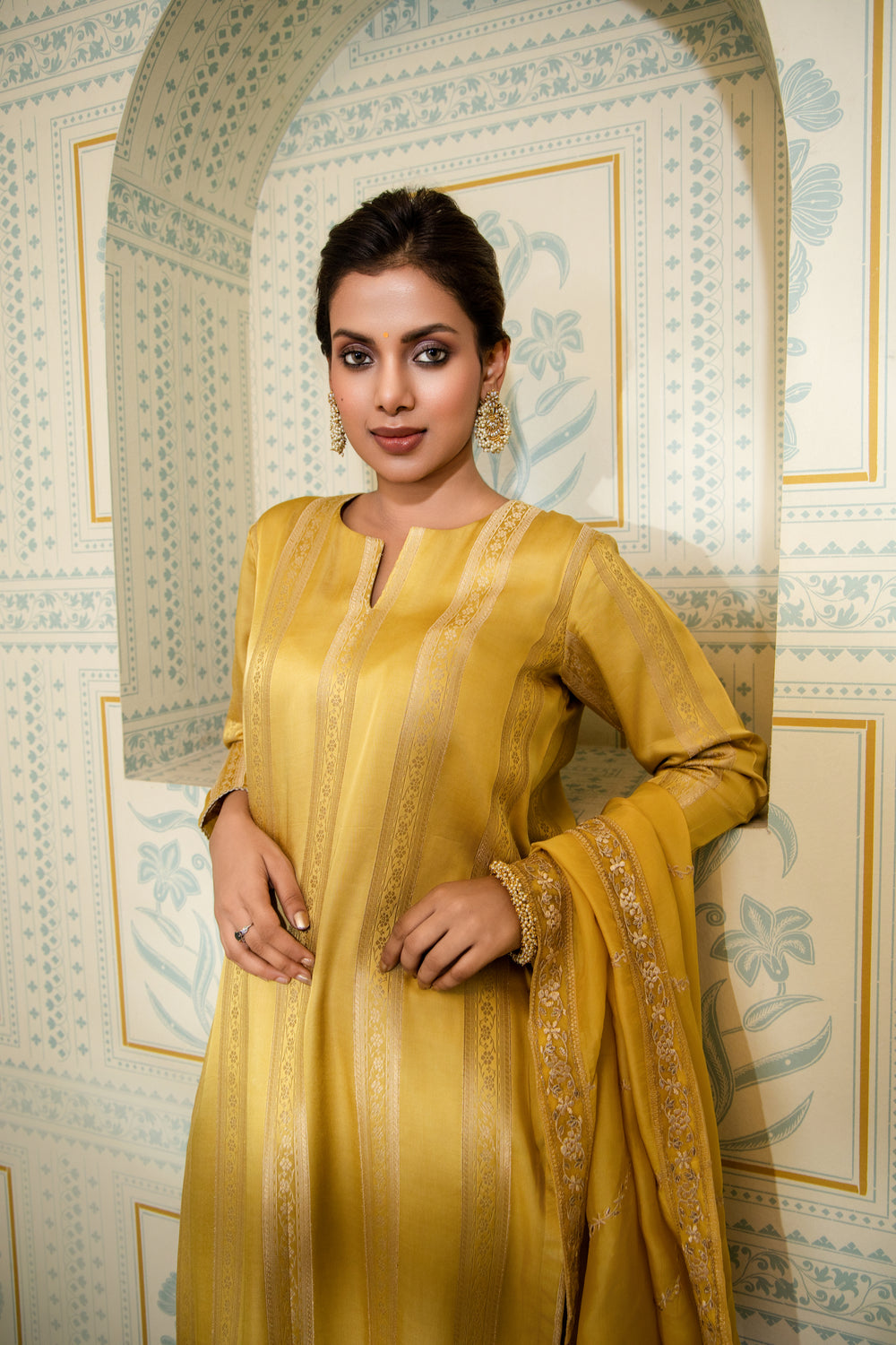 Top:   Premium pure Gazi Silk jacquard with embroidery